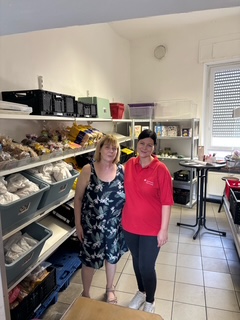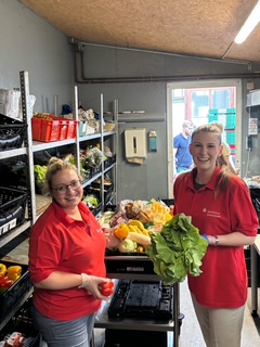 - im Gemüsehaus bei der Vorbereitung und Ausgabe frischer Lebensmittel